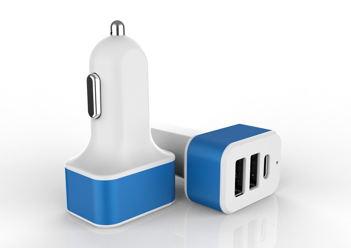 İki USB Bağlantı Noktalı ve C Tipi Çıkışlı, PC + ABC Malzemeli Çoklu Bağlantı Noktalı Araç Şarj Cihazı 5V 4.4A